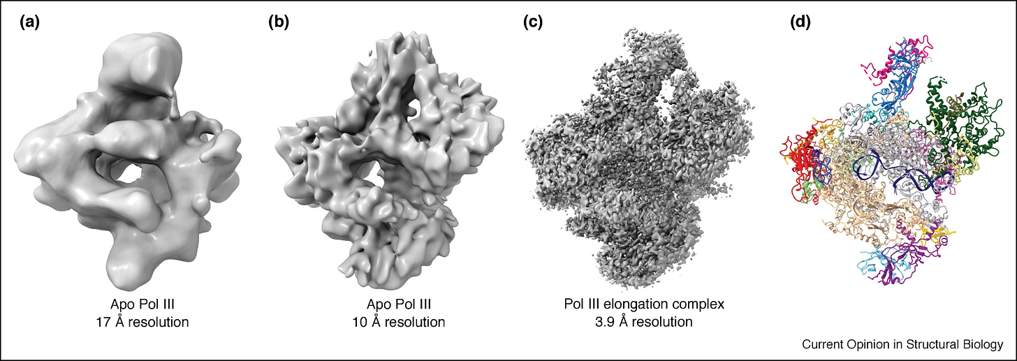 In my previous piece, Zooming into biological structure, I wrote about how scientists have built a mosaic of microscopy techniques to study biological structure. I also recently published a piece with Asimov Press, Making the Electron Microscope, which talks about the early history of the electron microscope and a detailed description of how it works. This current essay, which is meant to be a standalone piece, focuses on the more recent history of electron microscopy. I outline how an amalgamation of sample preparation techniques, computational advances, and electron detector technology all came together to revolutionize structural biology, yet again.
